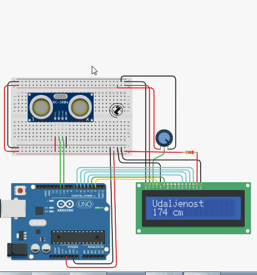 mjerenje udaljenosti - Ultrasonic Senslor i LCD displej