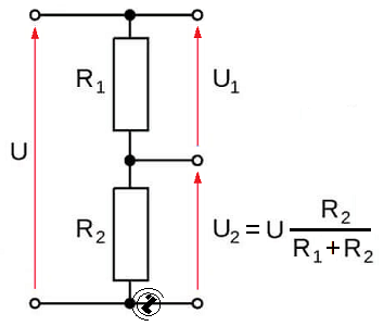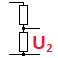 Napon na ulazu je 5 V, Otpori su: R1 = 2 oma i R2 = 3 oma. Koliki je napon U2. Otkucaj samo brojnu vrijednost.
