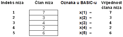 Slika 2. Oznake članova niza
