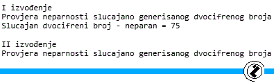 cout << "Provjera neparnosti slucajano generisanog dvocifrenog broja" << endl; // naslov