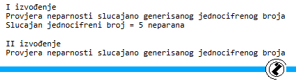 cout << "Provjera neparnosti slucajano generisanog jednocifrenog broja" << endl; // naslov