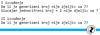 cout << "Da li je generisani broj nije djeljiv sa 7?" << endl; // naslov