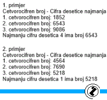 cout << "Cetvorocifren broj - Cifra desetice najmanja" << endl; // naslov