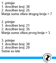 cout << "Manja suma cifara drugog broja = " << s2 << endl; // ispis