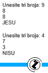 7.2.. Učitati tri broja i provjeriti da li su uređeni u nerastućem redoslijedu (A >= B >= C). Ispisati poruku (JESU , NISU).