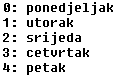 Napisati program za ispis dvostruke vrijednosti prvih 5 prirodnih brojeva. |