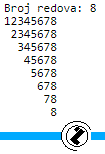 8.7.. Napisati program za ispis trougla kao na slici sa željenim brojem redova: