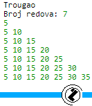 8.7.. Napisati program za ispis pravouglog trougla kao na slici sa željenim brojem redova: