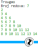 8.7.. Napisati program za ispis pravouglog trougla kao na slici sa željenim brojem redova: