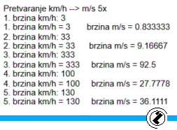 cout << "Pretvaranje km/h --> m/s 5x" << endl; // naslov