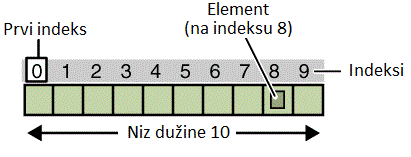 cout << "Element sa indeksom 0: " cout << niz[0]); // ispis indeksa i vrijednosti elementa niza
