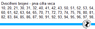 cout << "Dvocifreni brojevi - prva cifra veca od druge" << endl;