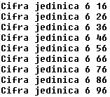 cout << "Dvocifreni brojevi - druga cifra je 6" << endl; // naslov