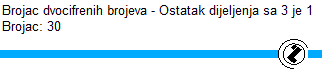 cout << "Brojac dvocifrenih brojeva - Ostatak dijeljenja sa 3 je 1" << endl; // naslov