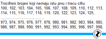 cout << "Trocifreni brojevi koji nemaju istu prvu i trecu cifru" << endl;