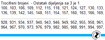 cout << "Trocifreni brojevi - Ostatak dijeljenja sa 3 je 1" << endl;
