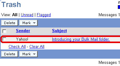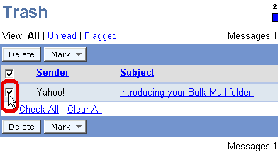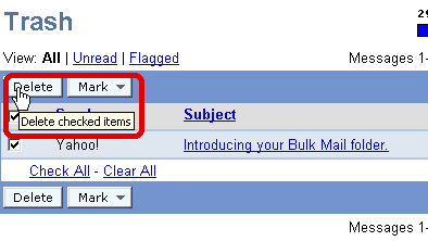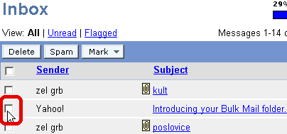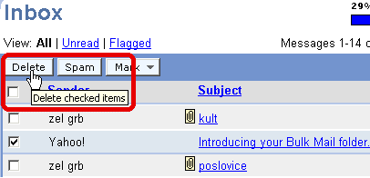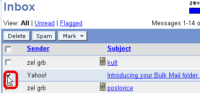 Korak: 7. Postaviti pokazivač iznad CHECKBOX -a neželjene poruke u koloni DELETE |
