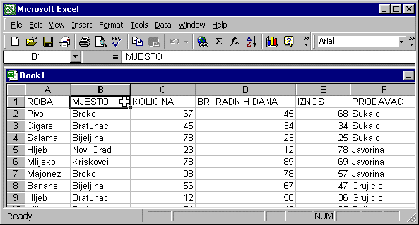 5. Da dobijete samo redove koji sadrze specificnu vrijednost kliknite na strelicu
