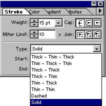 INDESINGSTROKEWINDOW > STROKE Opcijom Sroke definišete debljinu i oblik putanje, oblik krajnjih tačaka i uglova i sl. Opcije: Weight – odabir debljine putanje. Miter Limit – odabir oštrine uglova, (moguće samo kod oštrih uglova) Join – odabir izgleda uglova (oštro (1); polukružno (2); koso (3))