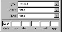 Kada izaberete Dashed pojaviće se dio gdje možete sami odabrati dužinu svake isprekidane linije (Dash) i dužinu razmaka između njih (gap). Olovka i putanja /PEN & PATH/ Index
