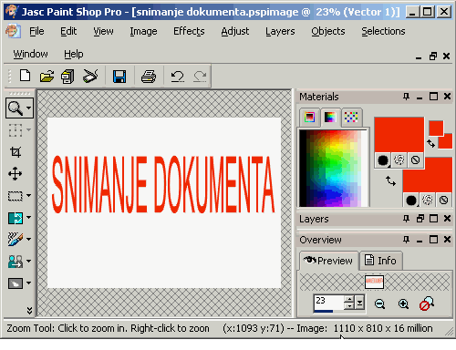 Na primjeru je prikayano snimanje dokumenta na