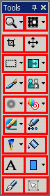| TOOLS TOOOLBAR je jedna od najvažnijih linija alatki u Paint Shop Pro-u. Alatke su podjeljene u grupama prema funkciji. Možete da označavate, sječete, brišete, slikate, crtate i obavljate različite zadatke sređivanja slika. | ![]() |