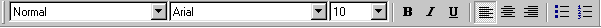 Formatting toolbar sadrzi opadajuce liste i dugmice koji daju detaljniji opis karakteristika fonta teksta.Da bi ste naucili kako dugmici i meni za alat radi, pomaknite kursor na prozor glavne radne sveske i namjestite ga da kruzi oko dugmeta sve dok: