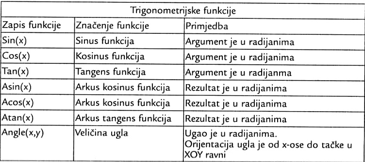 Postoji veliki broj ugrađenih funkcija u programu koje se mogu klasifikovati u sljedeće grupe: