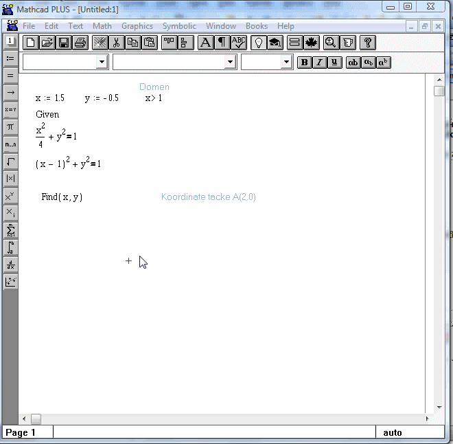 5. Umjesto znaka = pri pisanju sistema jednačina treba pritisnuti na tastaturi Ctrl + = ili nađite matematički znak za logičku jednakost u liniji sa najčešće korišćene funkcije koja se nalazi sa lijeve strane od radne površine (više vidite ovdje).