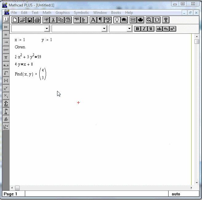 U sljedećem primjeru ćete vidjeti kako je u programu Mathcad moguće pronaći ta rješenja.