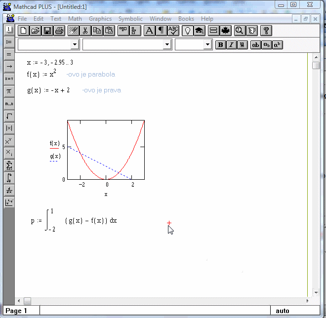 7. Napišite formulu za računanje površine figura označenih krivuljama koju ste učili iz matematike zajedno sa granicama integrala.