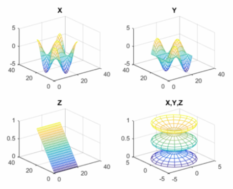 subplot(2,2,4); mesh(X,Y,Z); title('X,Y,Z');