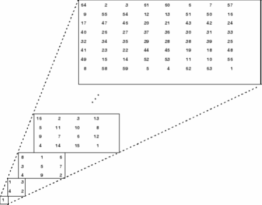 proizvodi sekvencu magičnih kvadrata različitog reda: