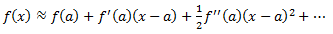 Po Tejlorovoj teoremi aproksimacija funkcije f(x) u okolini tačke x= a je data sa