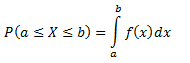 Površina ispod krive f(x) između a i b predstavlja vjerovatnoću da će posmatrana vrijednost slučajne varijable X biti između a i b. Ovaj koncept je ilustrovan na sljedećoj slici gdje zasjenčena površina predstavlja traženu vjerovatnoću.