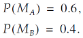 Neka MA označava događaj da dio dolazi od proizvođača A, a MB predstavlja događaj da klipni prsten dolazi od proizvođača B. Ako slučajno izaberemo dio iz naše zalihe klipnih prstenova, možemo dodijeliti vjerovatnoće ovim događajima na sljedeći način: