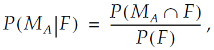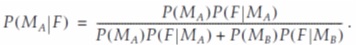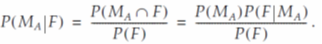 gdje predstavlja posteriornu vjerovatnoću da dio dolazi od proizvođača A, a F je događaj da je klipni prsten otkazao. Koristeći Pravilo množenja (jednačina 2), možemo pisati brojnik u jednačini (5) u pogledu događaja F i naše priorne vjerovatnoće da dio dolazi od proizvođača A, na sljedeći način