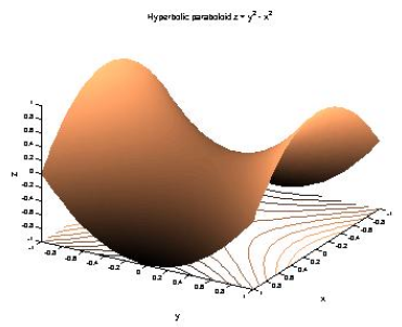 U ovom primjeru nacrtaćemo hiperbolički paraboloid z = y2 – x2 preko kvadrata –1 < x < 1, -1< y< 1