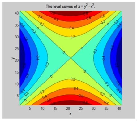 Sada ćemo obratiti pažnju na komande u linijama 23 do 25. Komanda figure omogućava Matlabu da kreira novi Figure Window u kojem će biti nacrtane linije nivoa. Da bi se poboljšao graf, koristimo komandu contourf umjesto contour. Prva crta popunjene konturne linije dok druga to ne radi. U istoj liniji koristimo komandu hold on da zadrži tekući crtež i sve osobine osa tako da se naredne grafičke komande dodaju na postojeći graf. Prva komanda u liniji 25 vraća matricu c i grafički handle h koji su upotrebljeni kao ulazni parametri za funkciju clabel, koja dodaje oznake visine tekućem konturnom crtežu.