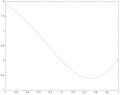 Kako smo rekli, najprije moramo nacrtati graf posmatrane funkcije. Budući da funkcija sinus može poprimiti jedino vrijednosti iz segmenta [-1,1], i vrijednost x2 ne treba biti veća od 1 (bude li veća, nikako ne možemo dobiti nulu), što znači da trebamo uzeti x ϵ [-1, 1]. (Ako nula uopšte postoji, sigurno se nalazi u tom segmentu.) Stoga u novom redu radnog prostora ukucamo: