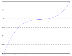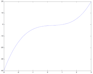Zadan je polinom p(x) = x3 - x2 + x - 1. Odredimo sve njegove nule, izračunajmo p(1 – i) + p(1 + i)), te prikažimo grafički taj polinom iznad segmenta [–3, 3].