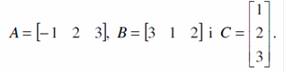 A=[-1 2 3];B=[3 1 2];C=[1;2;3];