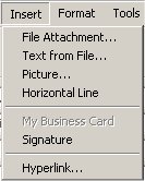 Da biste ručno ubacili potpis u vaše pismo, u prozoru za pisanje nove poruke kliknite na meni Insert i u njemu na opciju Signature i vaš potpis će se pojaviti u polju za unos teksta pisma.