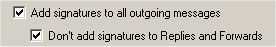 Prvom se odabrani potpis dodaje automatski svim porukama koje šaljete a drugom se doređuje da li će se vaš potpis dodavati u odgovorima i prosljeđenim pismima.