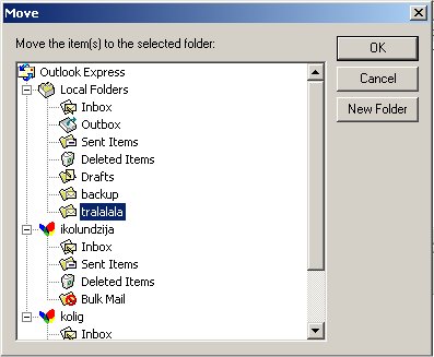 Premiještanje pisma se obavlja tako da prvo odaberete pismo (ili pisma) koja želite da prebacite i onda u meniju koji otvorite desnim klikom odaberete opciju Move to Folder