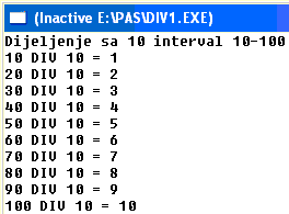 WRITELN('Dijeljenje sa 10 interval 10-100');