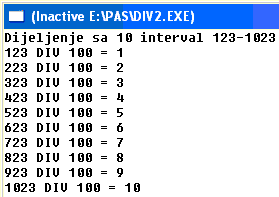 WRITELN('Dijeljenje sa 10 interval 123-1023');