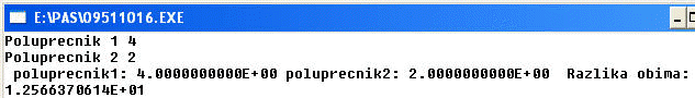 9.5.16. Naći razliku obima dva različita kruga (koristi isti potprogram FUNCTION 2 puta za obim kruga)razlika = 2 r1 Pi - 2 r2 Pi