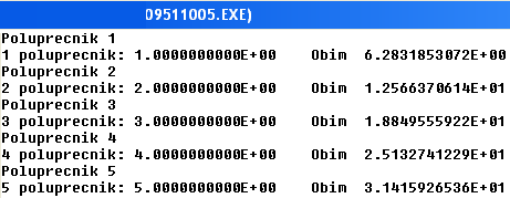 9.5.5. Za upisani poluprečnik izračunati obim (pet upisa; u glavnom programu pridruzivanje