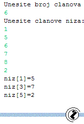 10.1..Učitati članove niza. Ispisati članove niza sa neparnim ideksom.